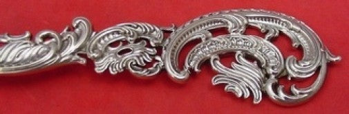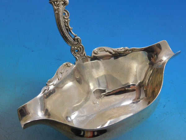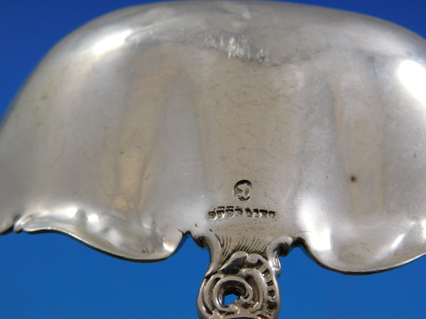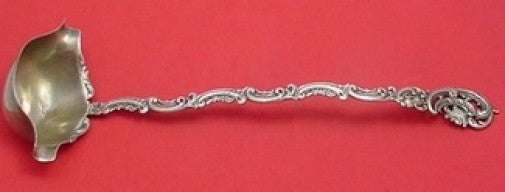 Sterling silver Punch Ladle 14" in the pattern Du Barry Pierced by Durgin. It is not monogrammed and is in good vintage condition with some small dents in bowl. The die struck handle incorporates an intricate, asymmetrical, rococo, ornate, pierced design.
