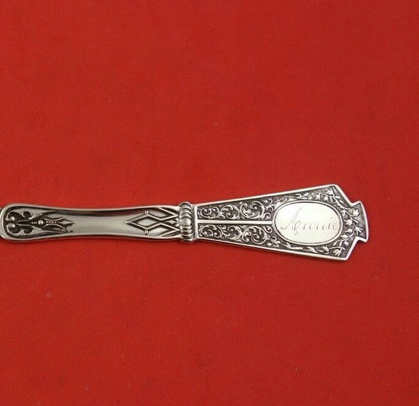 Sterling silver flat handle Master Butter 6 7/8" in the pattern Duchess by Seymour. It is monogrammed (monos vary) and is in excellent condition.