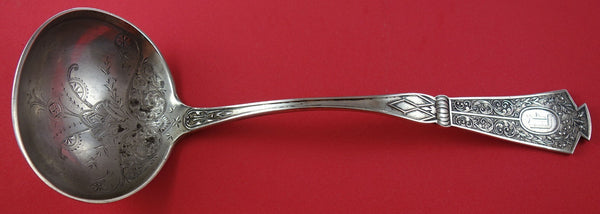 Sterling silver Soup Ladle bright-cut super heavy 10.2 ounce 12" in the pattern Duchess By Seymour. It is monogrammed (monos vary) and is in excellent condition.