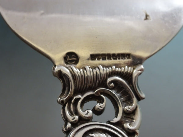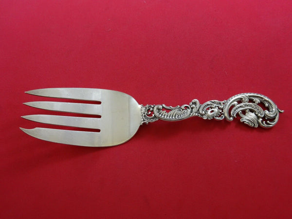 Antique sterling silver Fish Serving Fork 9 1/4" in the pattern Du Barry Pierced by Durgin. It is not monogrammed and is in excellent condition. The die struck handle incorporates an intricate, asymmetrical, rococo, ornate, pierced design.