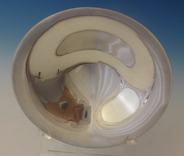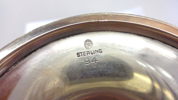 American made, Danish style, modern style raised compote made by an unknown maker with lovely 3-D Jensen style grape motif. The piece dates from the 1960's and is marked with Sterling and #94. It measures 6 1/4" tall, 6 1/2" wide, and the compote weighs 11.3 ozt. It is not monogrammed and is in excellent condition.