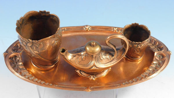 Gorham 4-piece smoking set made in bronze in a Art Nouveau design. The set includes: