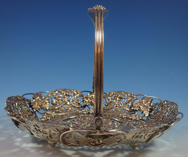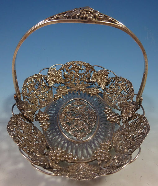 Theodore Starr sterling silver basket. It has four ball feet, cast and applied cherubs and grapes. The piece is marked with #2302, it measures 8 1/2" x 6 3/4" x 6 1/2", and it weighs 17.99 ozt. It is not monogrammed and is in excellent condition.