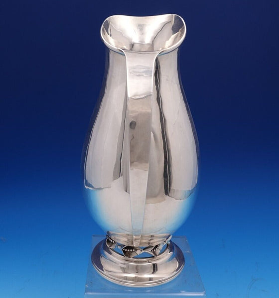 Stunning Blossom by De M. Studio sterling silver handmade water pitcher with calla lily 3-D design around base. This pitcher measures 10 1/2" tall x 4 3/4" and weighs 10.7 troy ounces. It is not monogrammed and is in good estate condition. Absolutely beautiful!