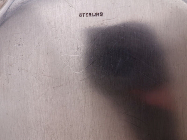 Lovely Chrysanthemum by Mauser sterling silver dessert plate marked #1056A. This plate measures 1/2" tall x 7" in diameter and weighs 6.3 troy ounces. It is not monogrammed and is in good vintage condition. Pretty!