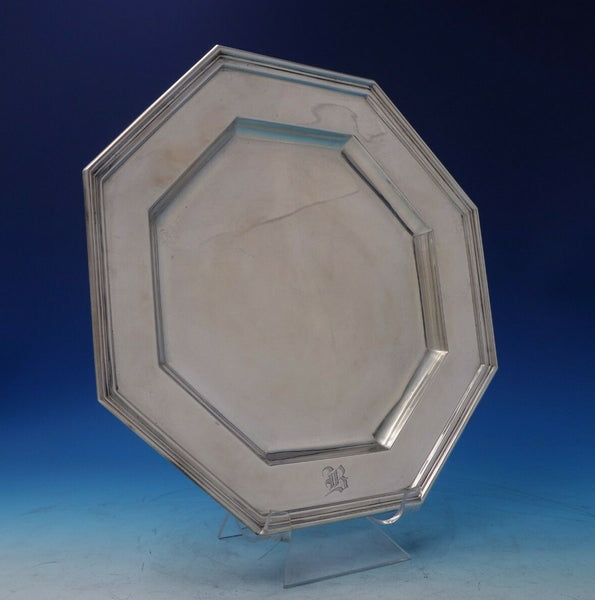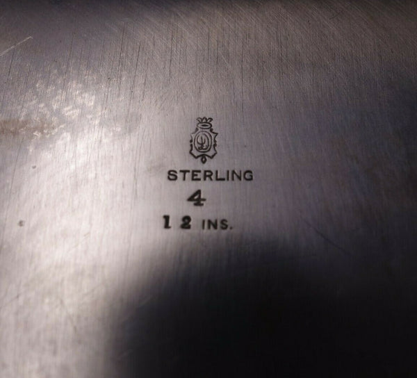 Remarkable Fairfax by Durgin-Gorham sterling silver charger plate marked #4. This plate measures 3/4" tall x 11 1/2" and weighs 20.2 troy ounces. It is monogrammed (see photos) and is in good vintage condition. This plate will be beautifully polished prior to