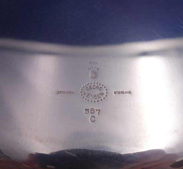 Outstanding Georg Jensen sterling silver hand hammered charger plate marked #587. This plate measures 3/4" tall x 11" in diameter and weighs 22.3 troy ounces. It is not monogrammed and is in good vintage condition. Superb!