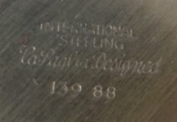 La Paglia by International sterling silver bread butter or dessert plate. The piece is marked with #13988, it measures 6 1/2" diameter, and it weighs 5.1 ozt.