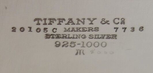 Spectacular Palmette by Tiffany Co. sterling silver pedestal serving plate. The piece is marked #20105C-7736 and has a date mark for 1907-47. The piece measures 12" in diameter x 1" tall and weighs 27.38 troy ounces. The piece has a vintage monogram in the center (see photos), and is in excellent condition. Outstanding!