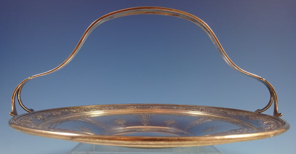Seville by Towle sterling silver dessert plate with handle. It is great for cookies or bars. It is marked with #95211, it measures 5 1/4" tall x 10 1/4" diameter, and it weighs 12.7 ozt.