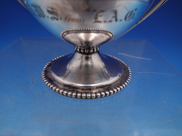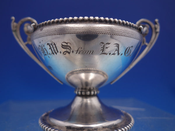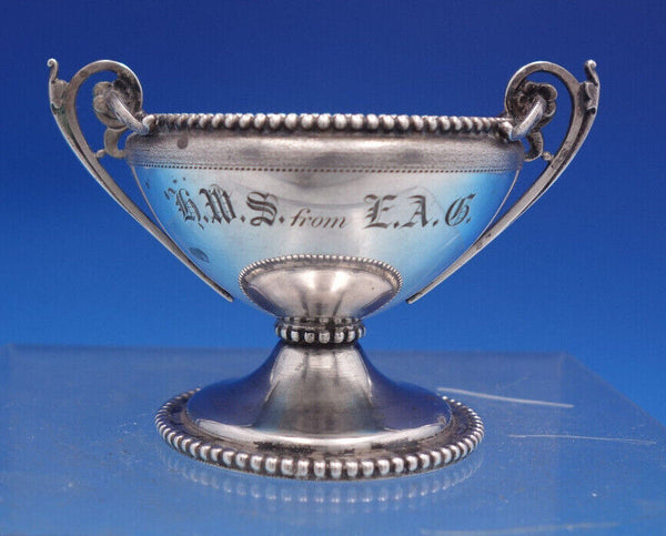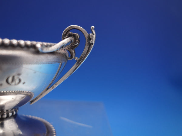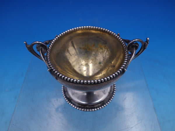 Gorham sterling silver Master salt dip with beaded rim and base, two cast handles, and pedestal base, stamped