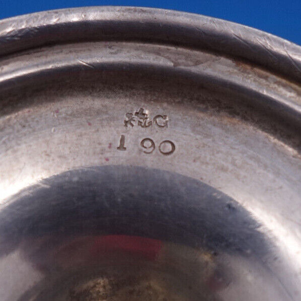 #190. The salt dip measures 3 3/8" x 2 3/8" x 2 3/8", and it weighs 2.38 ozt. It