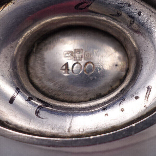 #400. The salt dip measures 5" x 2" x 1 7/8", and it weighs 2.14 ozt. It