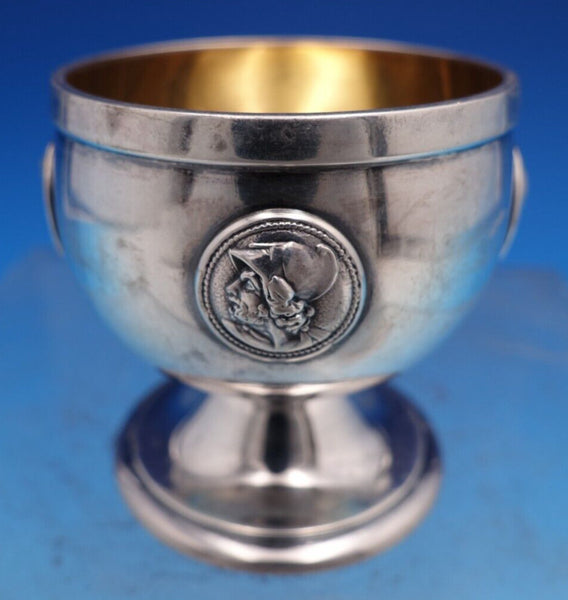 Spectacular Medallion by Gorham sterling silver salt dip with gold washed interior marked #510. This piece measures 2 1/4" x 2 1/8" and weighs 2.1 troy ounces. It is monogrammed (see photos) and is in good estate condition. Superb!