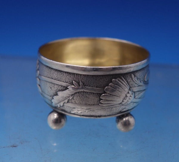 Lovely Vine by Tiffany and Co sterling silver salt dip marked #7731/254. This piece has a gold washed interior and a daisy motif. It measures 1 1/4" x 3/4". This salt dip is from the Roslyn Berlin collection pictured in the book "Tiffany Sterling Flatware When Dining Was an Art" by Roslyn Berlin and William P. Hood.