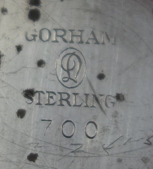 Gorham/Durgin sterling silver pepper shaker and three salt dips. The pieces are monogrammed (see photos), and are marked with #700. The salt dips measure 3/4" x 1 5/8", and the pepper shaker is 2" x 1/2". This 4-piece set weighs 2.76 ozt., and is in excellent condition. Wonderful!