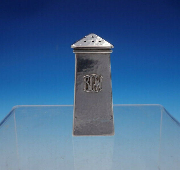 Beautiful Lebolt #1 sterling silver three piece hand hammered salt dip and pepper set. The total weight is 2.4 troy ounces. The set includes: