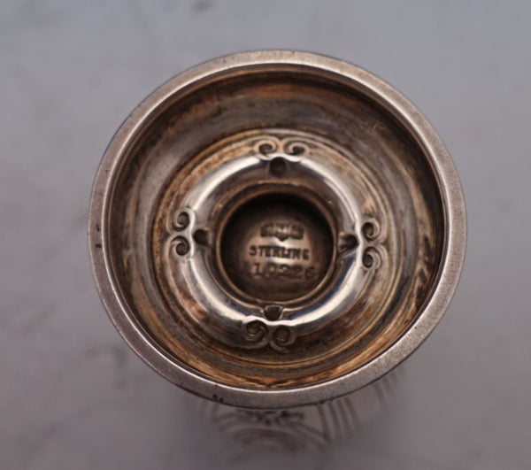 Lovely Maintenon by Gorham sterling silver salt and pepper shaker two-piece set marked #A10226. The shakers measure 5" tall x 2" and together weigh 5.5 troy ounces. The pieces are monogrammed "MA" (see photos), and are in good estate condition as shown. Beautiful!