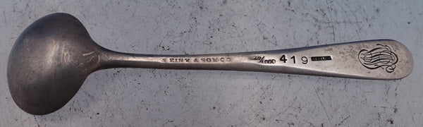 1 - Master Salt Spoon, stamped #419: measures 3 1/2" long.