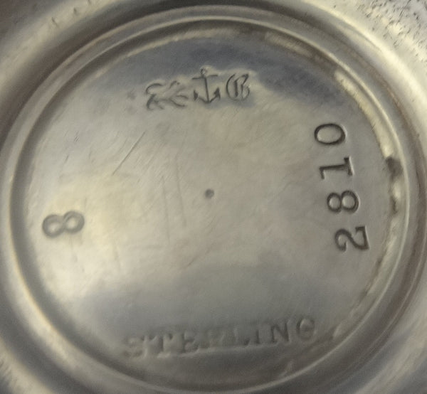 Saint Cloud by Gorham sterling salt and pepper shakers 2-piece set. They date from the 1890's and are marked #2810. The measurements for the pieces are 3 1/2" tall, 1 1/2" wide, and together they weigh 3.4 ozt. The pieces are not monogrammed and are in excellent condition. Beautiful set! SKU#0225.