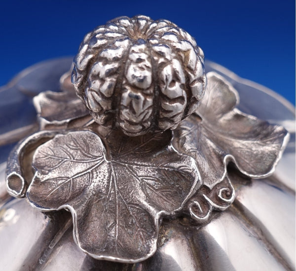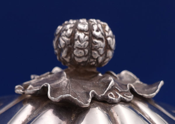 Beautiful CJ Vander London England c1979 melon form sterling silver four-piece tea set with kings style shell feet and 3-D melon leaf finials. This set includes: