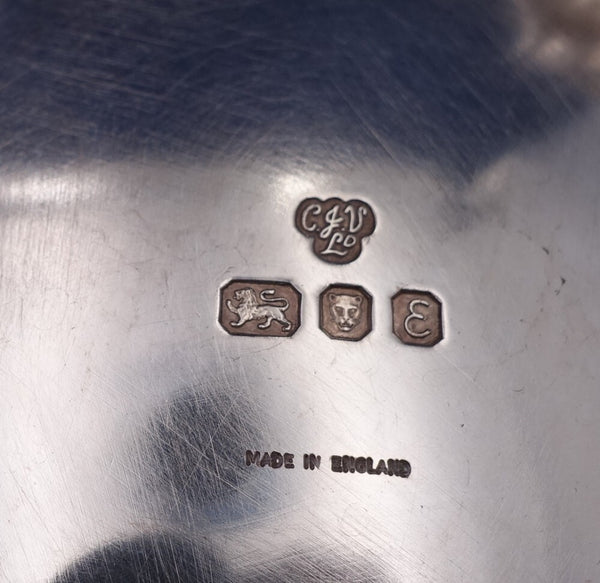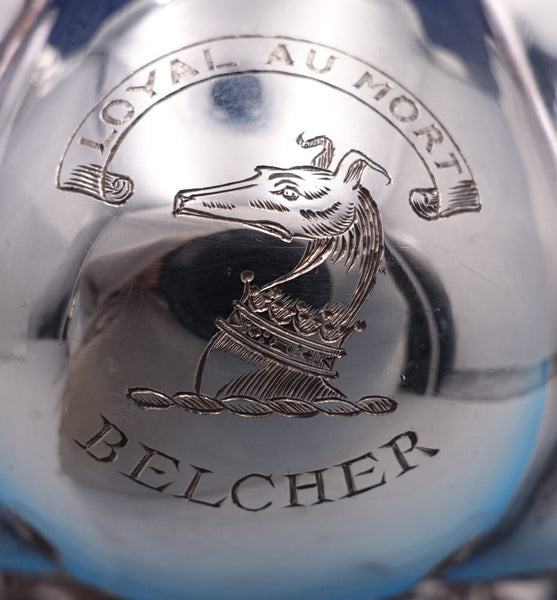 The pieces in this set are engraved with a family crest of a whippet hound with crown, as shown, and are in excellent vintage condition. Outstanding set!