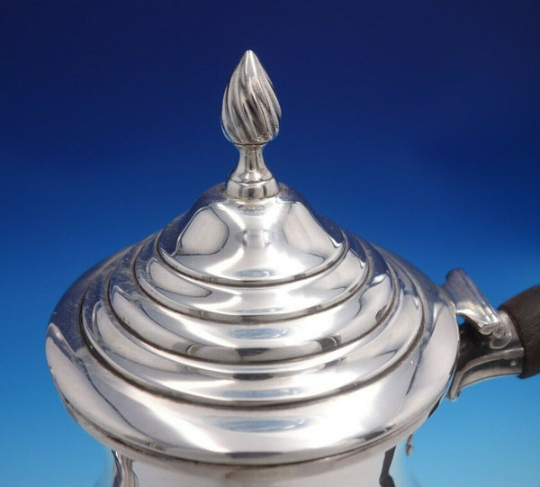1 - Coffee Pot (wood handle): Measures 9" x 11 1/4" tall and weighs 35.3 troy ounces.