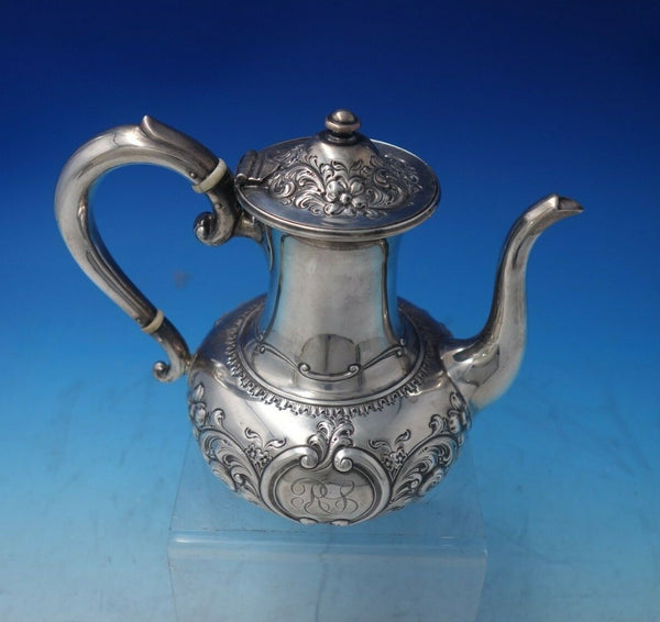 Beautiful Repousse by Howard sterling silver tea pot, marked #1896. This piece measures 7 1/2" x 6" and weighs 14.4 troy ounces. It is monogrammed (see photos), and is in good vintage condition. Lovely!