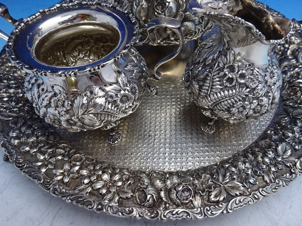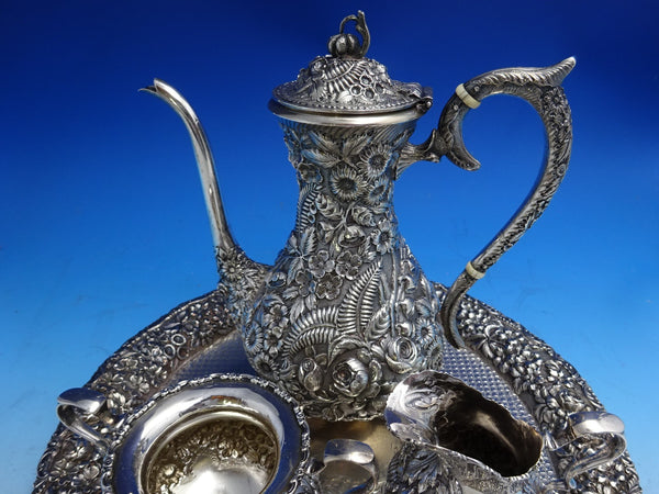 Outstanding Repousse by James R. Armiger sterling silver four-piece demitasse set. This set includes: