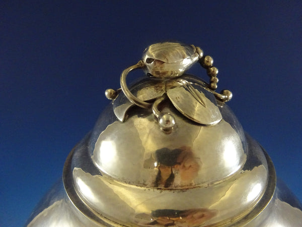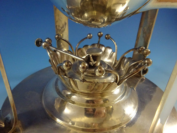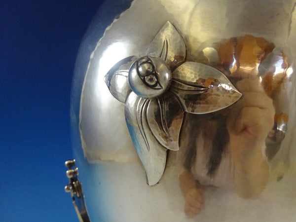 Monumental Blossom by Randahl Sterling silver hand wrought Hot Water Urn or Samovar with fabulous applied modern floral and beaded elements, flower petal base with 3-D stamens and removable burner, and large 3-D blossom finial. It measures a huge 19" in height with ball feet, and 8 1/2" in diameter (at the base).