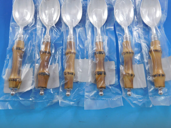 New, unused Sterling silver with Bamboo handle Set of 6 Teaspoons, 6 1/8", in the pattern Tahiti by Buccellati.