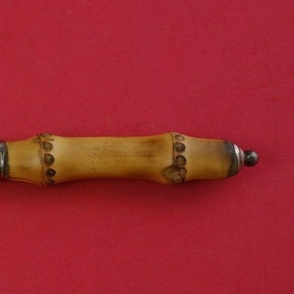 Dinner Knife 9 3/4 with stainless blade, the handle made with real Tahitian bamboo with sterling tip in the pattern Tahiti by Buccellati. This pattern is incredibly rare. It is not monogrammed and is in excellent condition.