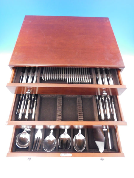 Exceptional Dinner Size Aria by Christofle France sterling silver Flatware set - 79 pieces. This service includes: