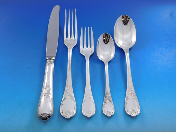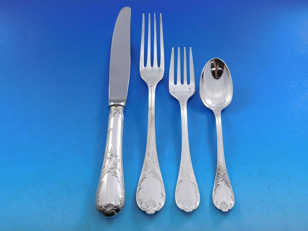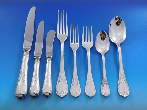 Outstanding monumental Marly by Christofle France sterling silver flatware set in original fitted chest - 100 pieces. This set includes: