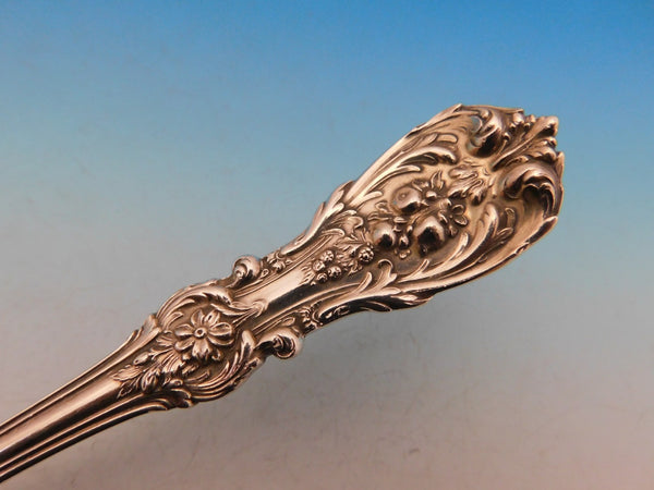 Sterling silver Dinner Fork "H" heavy mark 7 7/8" in the pattern Francis I By Reed Barton with old Eagle, R, Lion mark. It is not monogrammed and is in excellent condition.