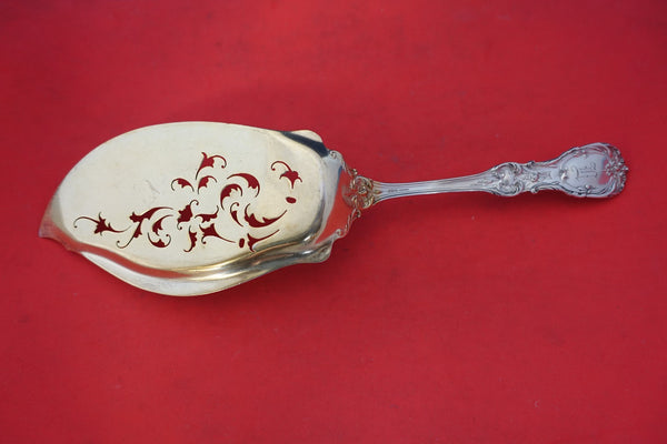 Sterling silver Eagle R Lion Mark Fish Server Gold Washed and Hand Pierced 11 3/4" in the pattern Francis I by Reed and Barton. It is monogrammed on the reverse (monos vary) and is in excellent condition.