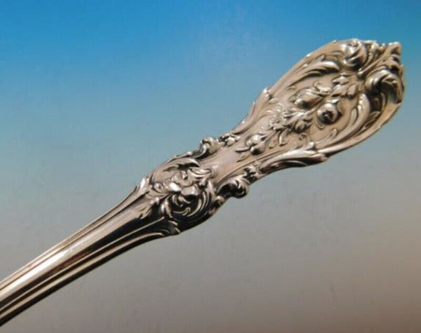 Sterling silver Eagle R Lion Mark Salad Fork Gold Washed 6 1/4" in the pattern Francis I by Reed and Barton. It is not monogrammed and is in excellent condition.