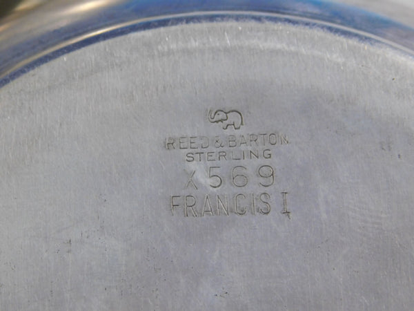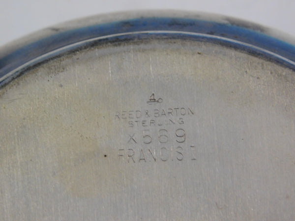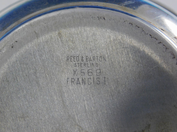 Beautiful Francis I by Reed and Barton sterling silver porringer child's bowl with flat handle marked #X569. This piece measures 6" x 1 3/4" and weighs 4.13 troy ounces. It is not monogrammed and is in good estate condition. (Note: Date marks vary.)