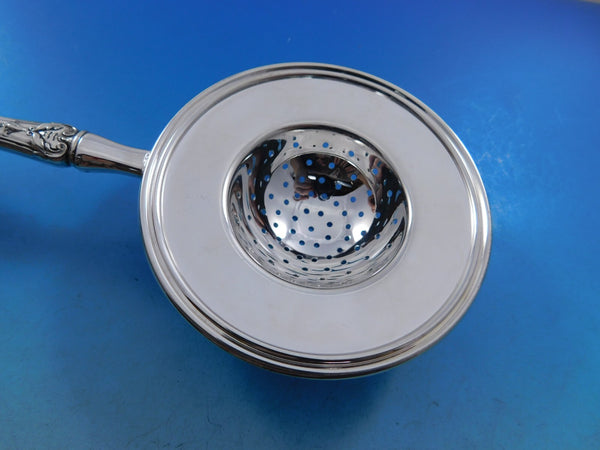 Sterling Silver hollow handle with silverplated implement Over the cup Tea Strainer custom made,in the pattern Francis I by Reed Barton. It measures 7 7/8" in length with a bowl diameter of 3 1/2". It is not monogrammed and is in excellent condition.