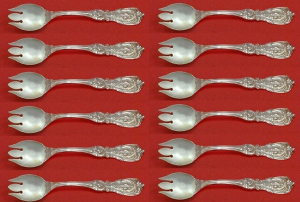 Sterling silver custom made set of 12 Ice Cream Forks 5 3/4" in the pattern Francis I by Reed and Barton with newer script hallmark. They are not monogrammed and are in excellent condition.