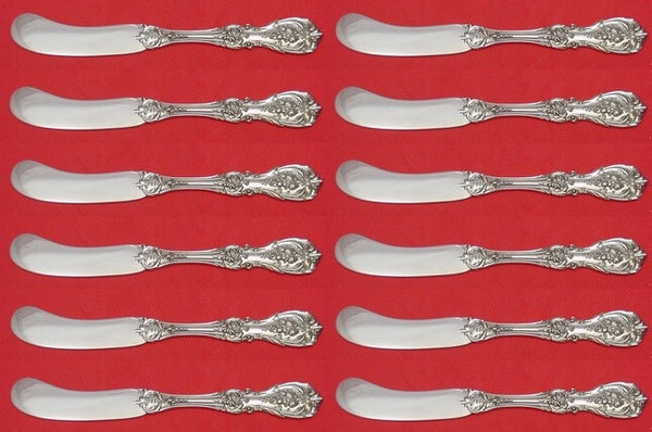 Sterling Silver Set of 12 Flat Handle Butter Spreaders 5 7/8" in the pattern Francis I by Reed Barton with old hallmarks. They are not monogrammed and are in excellent condition.