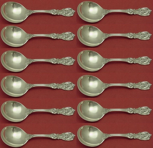 Sterling Silver Set of 12 Cream Soup Spoons 6" in the pattern Francis I by Reed Barton with old hallmarks. They are not monogrammed and are in excellent condition.