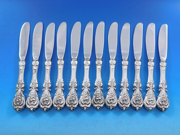 Sterling Silver Set of 12 Hollow Handle Butter Spreaders with modern stainless blades 6 3/8" in the pattern Francis I by Reed Barton (newer). They are not monogrammed and are in excellent condition.