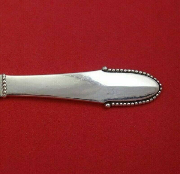 Sterling silver flat handle GJ Marks Butter Spreader, all-sterling 5 7/8" in the pattern Beaded by Georg Jensen. It is not monogrammed and is in excellent condition.