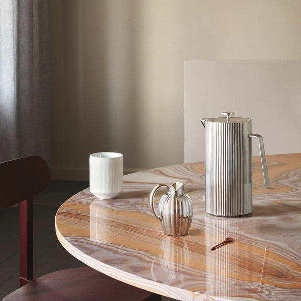 The distinctive and elegant grooved surface of this Bernadotte French coffee press adds an unmistakable touch of Art Deco to the table. Beautifully crafted from mirror-polished stainless steel, the press is double walled to keep the coffee warm a little longer, and the stainless steel filter is easy to clean.