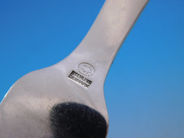 Superb Dinner Size Bittersweet by Georg Jensen sterling silver Flatware set, 77 pieces. This set includes:12 Dinner Size Knives, short wide handles, 9" 12 Dinner Size Forks, 7 1/2" 12 Salad Forks, 6 3/8" 12 Teaspoons, 5 7/8" 12 Large Cream Soup Spoons with square shoulders, 6 1/2" 12 Fruit Knives w/stainless blades, 6 3/4" 1 Tomato Server w/stainless blade, 7 3/4" 1 Salad Serving Set, flat handle all-sterling, 8 1/4" 1 Salad Serving Set, hollow handle all-sterling, 8"