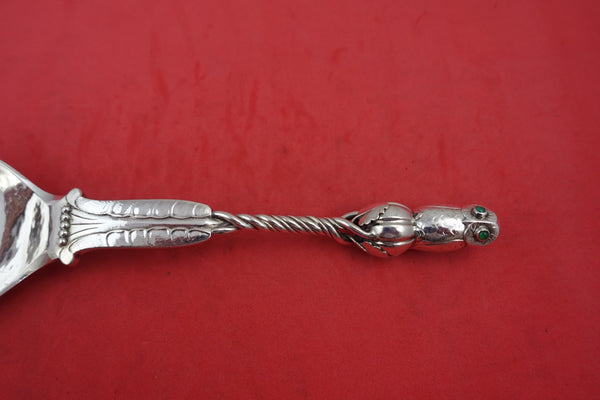 Sterling silver Salad Serving Set 3-D owl handle and hammered with green agate eyes 9 3/4" in the pattern Ornamental #113 by Georg Jensen. It is not monogrammed and is in excellent condition.