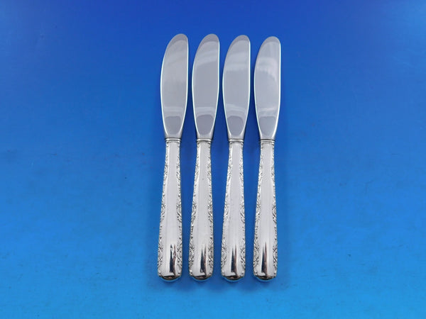 Set of 12 sterling silver hollow handle Butter Spreaders with stainless modern blades, 6 1/4", in the pattern Camellia by Gorham. They are not monogrammed and are in excellent condition.