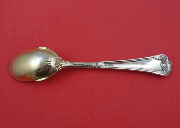 Sterling silver original Ice Cream Spoon Gold Washed 6" in the multi-motif pattern Cluny by Gorham. It is monogrammed (monos vary) and is in excellent condition.