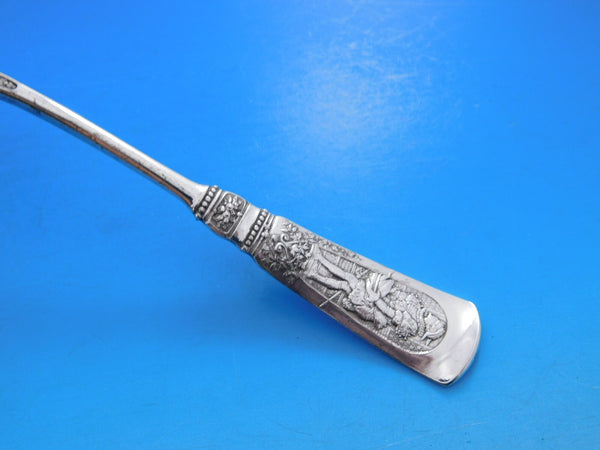 The academic nature in which designer Antione Heller looked to the past for inspiration also stems from the Beaux Arts movement. This multi-motif, figural pattern features French court of Fontainebleau, palace of King Francis I, with figures in court dress in varying food-related themes in feast or dinner service, and was introduced by Gorham in the year 1882.